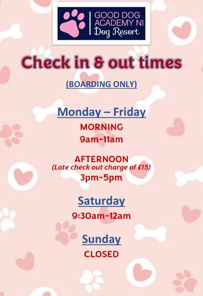 We have made some changed to our check in & out times for boarding guests. These new opening hours will be in effect from 1st Jan 2026.