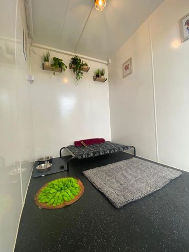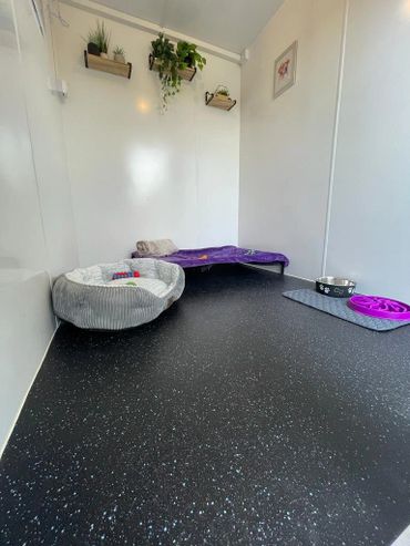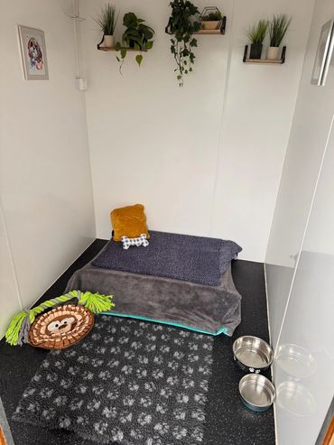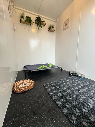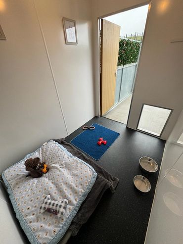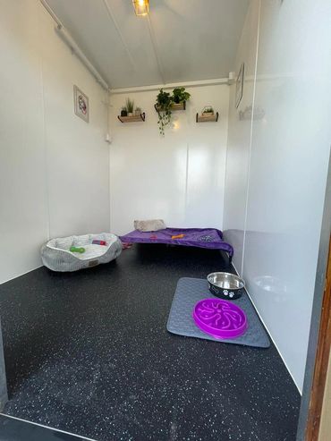 Each Cabin comes with thermostatic heating, dimmable lighting, *AM-Guard antimicrobial walls, 2 beds including an orthopaedic Kuranda bed, plush bedding & vet bedding, stuffed KONGS, lick & snuffle mat, private outdoor exercise area and of course a range of toys & chew items (rotated daily to keep it interesting) & lavender scent in each kennel to help relax your fur baby.