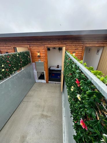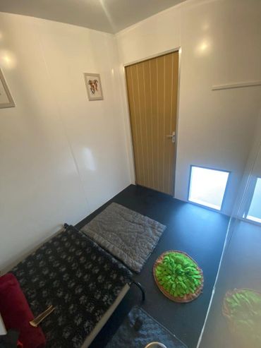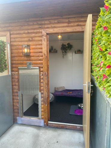At the end of a fun filled day, our guests will retreat to their own cosy pre-heated cabin & exercise area, to find the 'treat fairies' have left some tasty goodies in there for them.